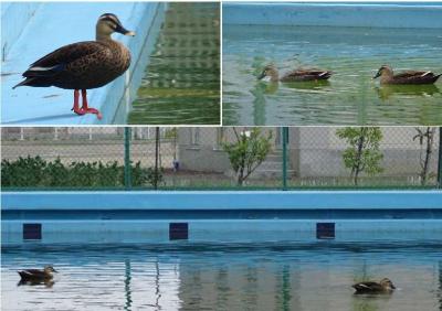 季節の使者でしょうか、カルガモかマガモらしき水鳥のつがいが、本校のプールで気持ちよさそうに泳いだり、えさをついばんだり優雅な時間を過ごしていました。いろいろ調べてみたところによりますと、カルガモは、全体に黒褐色で、顔は白っぽく、二本の黒褐色線があり、くちばしは黒く、先端部は黄色でよく目立ち、脚は橙赤色。メスオス同色ですが、体はオスの方が大きく、黒味も強いそうです。果たして、君はマガモかカルガモか。それとも・・・。