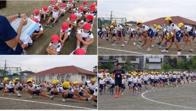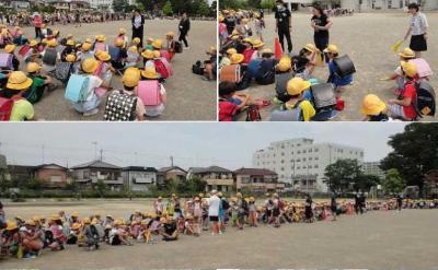 本日の避難訓練では、子どもたちは、「おかしも」(お~押さない、か~駆けない、し~しゃべらない、も~戻らない)を守って、素早く行動しました。児童と教職員合わせて総勢600名を超す大所帯が、4分以内で全員が避難場所である校庭に避難できました。