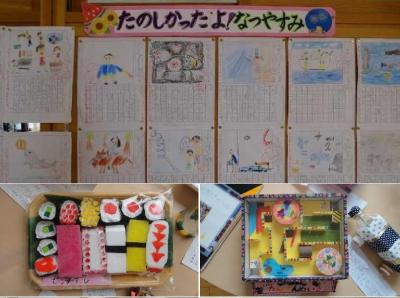夏休みの作品の紹介です。全員の作品ではありませんが、今回は主に工作、次回の2/2は自由研究を紹介する予定です。