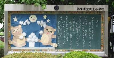 正門を入って右側にある掲示板に、童謡「まっかな秋」を作詞した薩摩忠〈さつまただし〉さん(1931/S6~2000/H12)の「九月」という詩が書いてあります。画像からではありますが、ぜひお読みください。この時期の子どもの心や様子をよく表してあります。