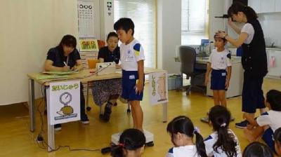 子どもたちの健康状態を継続的に把握するために、学校では年に3回、身体測定を行っています。本日は1,2年生を行いました。