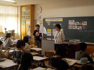 今日も5時間授業ですので、あと少しで授業も終わりですが、4年生はALTと一緒に「What alphabet!?」クイズを班別で楽しんでいました😄