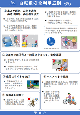 子供達の自転車乗車時における交通ルールの順守およびマナーの向上、ならびにヘルメットの着用について、警察庁から通知がきております。