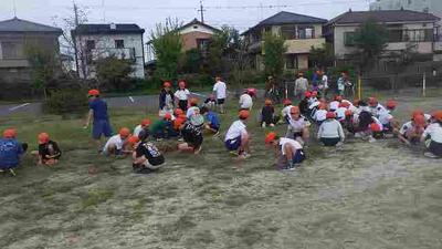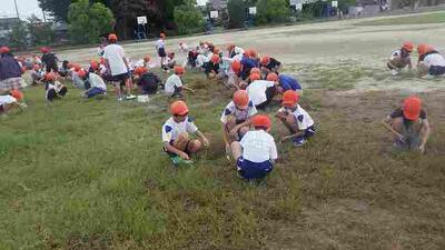 5年生は、朝の掃除の時間に校庭の除草作業です。頑張って、たくさん抜いてくれました。