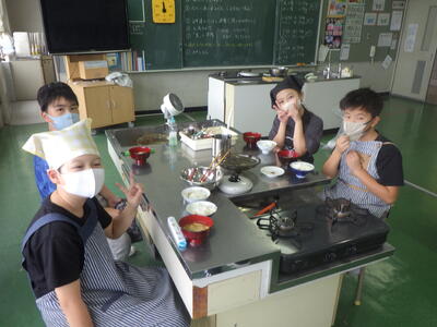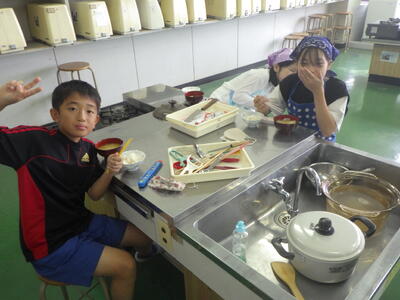 みそ汁では、煮干しでだしををとってから、自分たちで味噌を溶かし作ることができました。