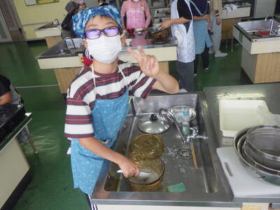ご飯は、米飯の調理に必要な米や水の分量や計量の仕方を学習してから、鍋で米を炊きました。
