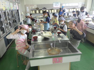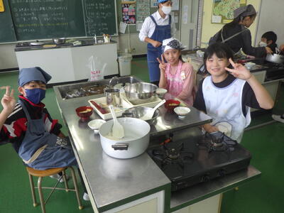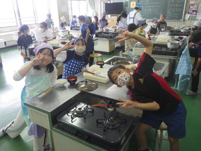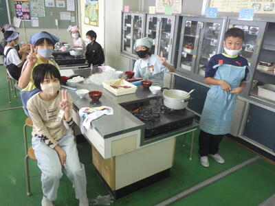 5年4組の調理実習の様子です。