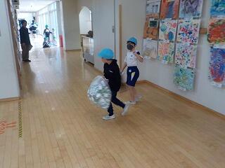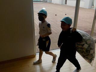 掃除中に牛中パックのゴミを運んでいる2年生に会いました💡遠くから大きな袋をもって近づいてきたので、プレゼントでもくれるのかと思ってしまいました😁
