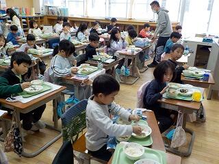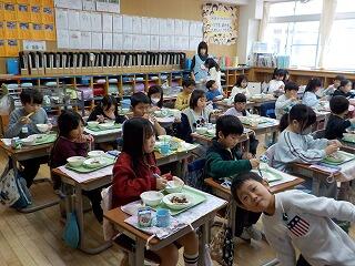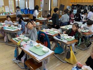 「お魚の食べ進み具合はどうかなぁ?」と思って、2年生の教室を覗いてみましたが、美味しそうに食べ進めていました🥢魚なので、当然骨もありますが、それをお箸でほぐして、よけながら食べる習慣を小学校のうちに付けられると、お魚を綺麗に食べきれる大人になれますね💡