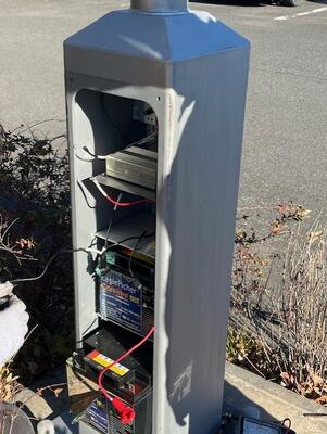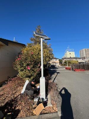 去年から(もしかしたらもっと前から)体育館前駐車場のライト&築山前のライトが点灯しない状態のままだったのですが、本日、業者の方がバッテリー交換に来てくださり、どちらも無事に修繕が終了しました😁