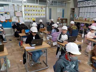 1/14 まるぐランドチェックテストと図工(3年生)&小谷バス下校