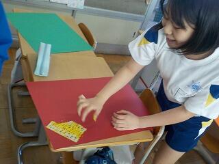4年2組では、版画の仕上げに向かって、版画を貼る台紙にも柄をつける作業を実施しています🎨