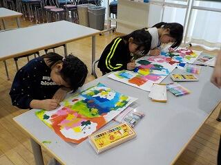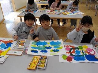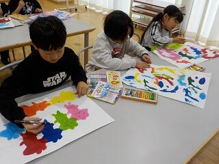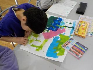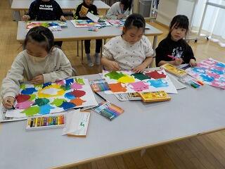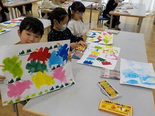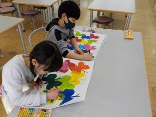 2年1組は、これから仕上げに入ってきます🎨各自、説明を聞いた後、クレヨンでさらに飾りをつけています😄