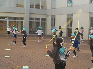 2年1組は、ウッドデッキで「単縄跳び30秒チャレンジ!」を実施中です🙂