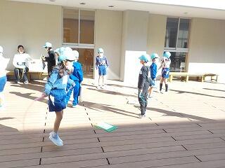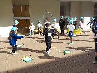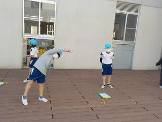 2年1組は、ウッドデッキで単縄跳びに取り組んでいます😁
