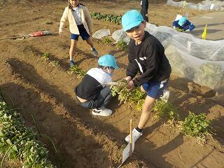 おじいちゃんに聞いて調べてきた子が、「これ以上、土の中で育てておくと割れてきちゃうから抜いたほうが良いよ。」とアドバイスを受けたそうで、話し合って抜くことにしたそうです🙂