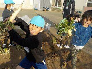 小さいものからなかなかのサイズのものまで、クラスの児童数分は収穫できたので、今日は大根を持ち帰ることになりそうです😁