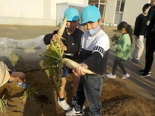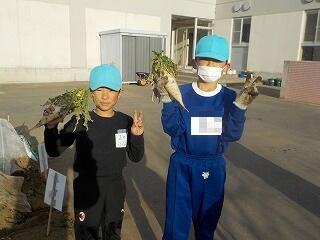 今日は、朝から2年生が野菜園で大根を収穫していました💡