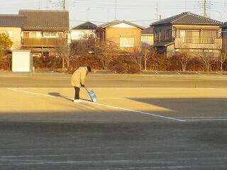 ↑ 朝からラインを引いてくれている職員に感謝!