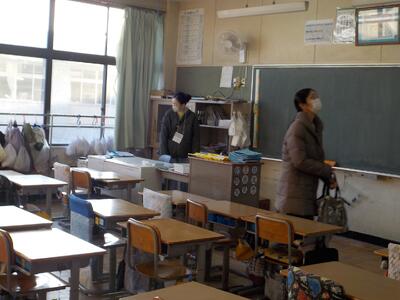 今日は、授業参観・懇談会に合わせて、PTA執行部の皆様に御来校いただき、校舎内の各教室、特別教室、更衣室になっている教材室、トイレなどの安全点検(第2回)を実施していただきました。