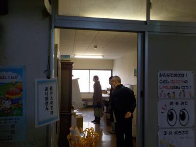 ① 鉄筋校舎2F教材室入口ドアにカーテンのような布を設置する(ドアの開閉時の為)。