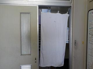 ①については、以下の写真のようにタオル生地をドア上部からすだれのように垂らしてみました。