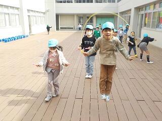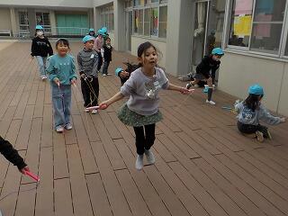 今日は暖かい陽気の中で、ウッドデッキでは単縄跳びの検定に取り組んでいる子がたくさんいました😄