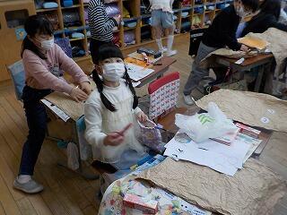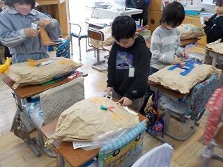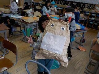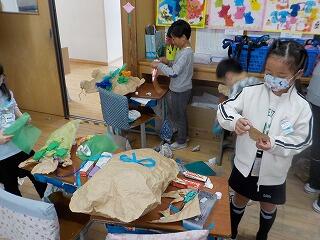 2年生は、図工の工作活動の一環で、「クラフト紙」を使って、製作活動をしています😁