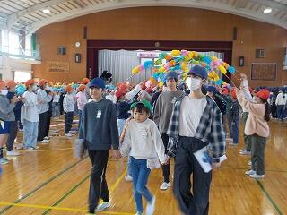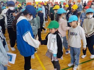 【1年生と手をつないで退場】