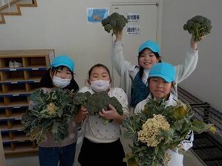 2年生が5時間目に学校野菜園から「ブロッコリー」と「カリフラワー」を収穫してきました🥦