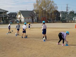 2年3組は、校庭で「ボール蹴りゲーム」に取り組んでいます⚽