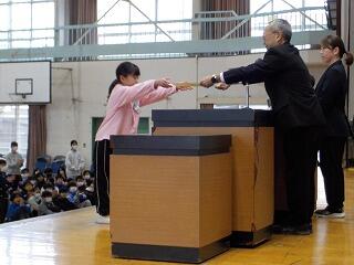 ※ 「鴻巣市書きぞめ展」・「埼玉県書きぞめ展」・「人権作文掲載表彰」・「埼玉県読書感想文コンクール」については、次回3月17日(火)の表彰朝会②で表彰いたします。