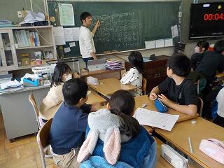 グループごとに、「+・-・×・÷」のどれが当てはまるのかを相談し合って、答え合わせをしています😄