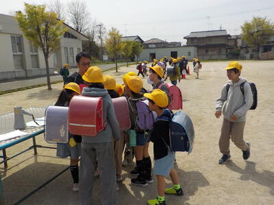 本日の3時間目に一斉下校を行いました。昨日入学した1年を含め、各地区ごとに集合し、通学班の確認と並び方や、集合場所や集合時刻の確認をしました。班長・副班長の皆さん、令和8年度も通学班が安全に登校できるよう、しっかりと役割を果たしてくれることを期待しています。それとともに、あいさつや信号の渡り方等、上級生として下級生のお手本になってくれるとうれしいです。