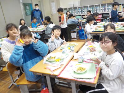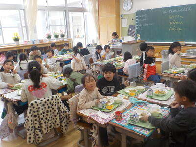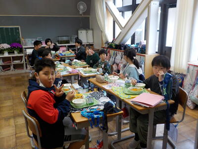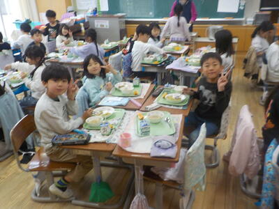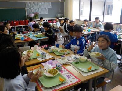 朝から子どもたちは、久しぶりの給食にドキドキ・わくわくしていました。