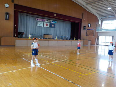 6年生は、親善球技大会に向けて、「体育」のバスケットボールの練習に取り組んでいます