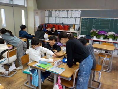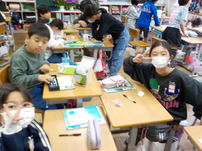 5年1組では、理科の学習で「発芽の実験」準備をしていました。