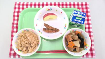 今日の給食は、茶飯、牛乳、めひかりのから揚げ、おでん、りんごでした。